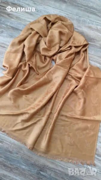 Разкошен Монограмен Шал с Брандово Лого Inspired в Цвят Шампанско КОД LV1 → Обява 50206640