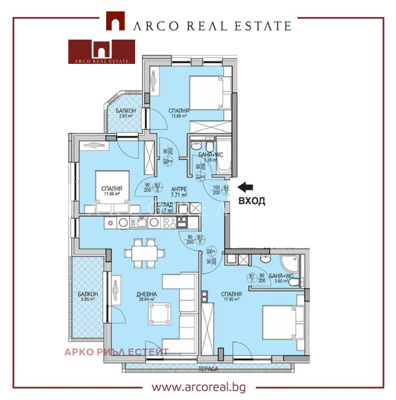 АRCO REAL ESTATE представя четиристаен апартамент в сграда на Акт 14 в квартал Кръстова вада. Сградата се намира на втора линия от бул.Черни връх,в непосредствена близост до бъдеща Метростанция и на пешеходно разстояние от мол Парадайс.