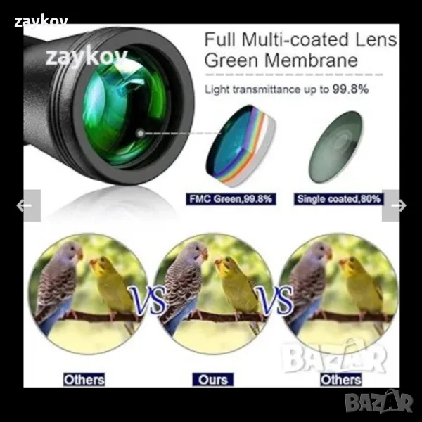 Бинокъл DANMO 10x50 за възрастни, BAK4 Prism FMC обектив, HD професионален бинокъл с каишка