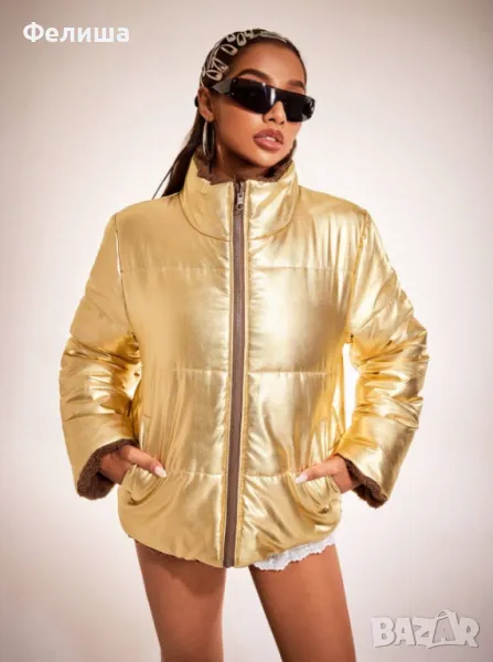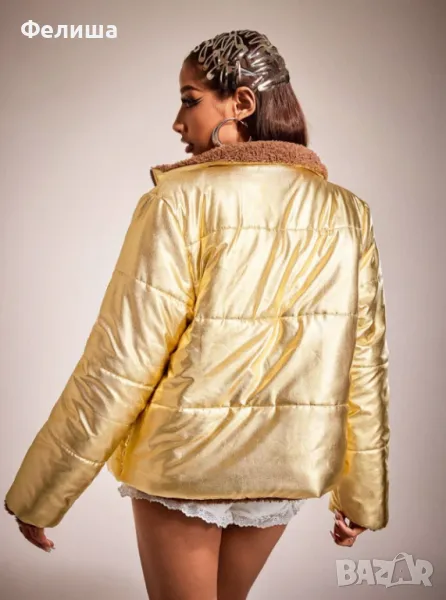 Удивително Красиво Бутиково Металическо Дамско Двулицево Златно Яке!