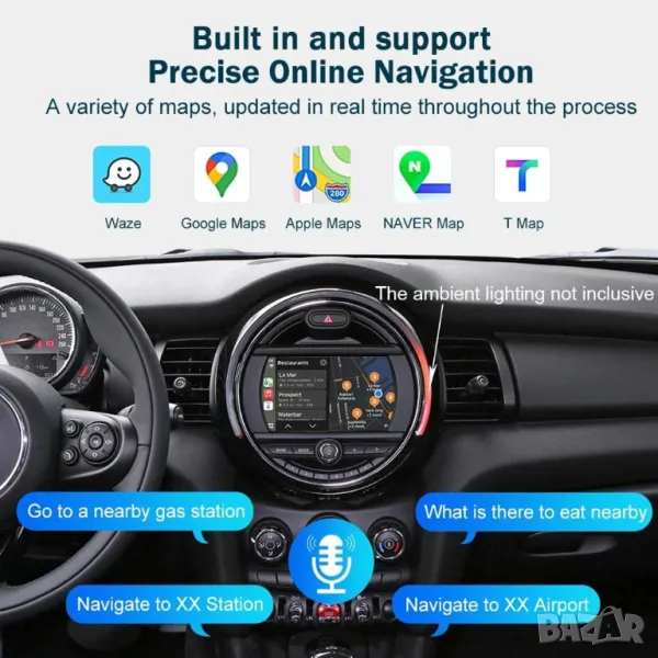 Поддържа всички навигации, съвместими с Android: IGO, WAZE, GOOGLE Maps и други