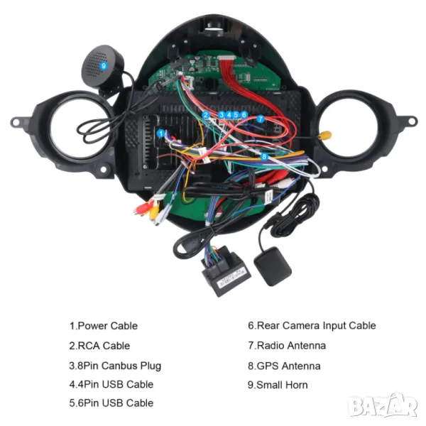 Пълен комплект с цялата рамка, преходни кабели и букси, декодери, предназначени и съвместими за монтиране на конкретния модел автомобил.