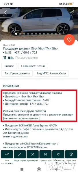 Продавам всякакви лети алуминиеви и железни джанти с гуми (летни и зимни)
