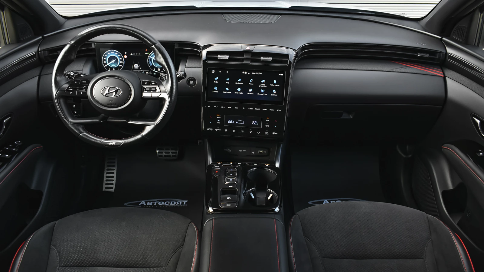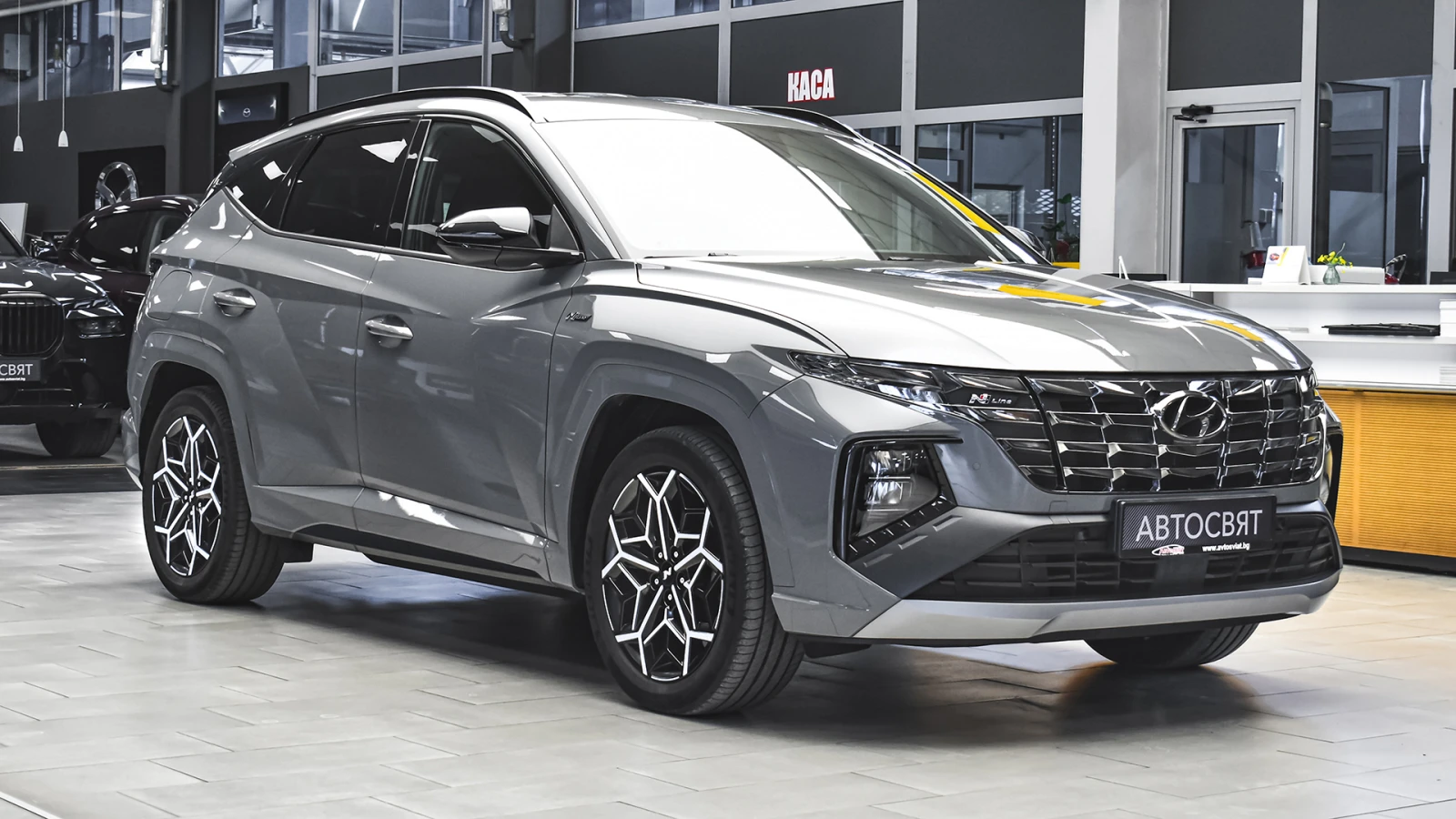 Автосвят ООД - официален представител на Opel и Mazda, предлага на Вашето внимание проверен автомобил Hyundai Tucson 1. 6 T-GDi N LINE Plug-in Hybrid 4x4 Automatic Предимства: - 12 месеца или 20 000 км пробег гаранция; - безплатна пътна помощ за Р България в рамките на гаранцията; - напълно обслужен. Допълнителни услуги: - лизинг; - сътрудничество при регистрация; - възможност за обратно изкупуване; - посредничество при застраховане; - посредничество при завеждане на щети при застрахователя. Пробег с едно зареждане на батерията 62 км. (WLTP) Брутен капацитет на батерията 13. 8 kWh Външен цвят Shadow Grey Спортни седалки с луксозна тапицерия на седалките от естествена кожа и велур с N-Line акценти Контрастни N-Line шевове в червено Интериорни и екстериорни N-Line лога Тапицерия на тавана в черен цвят N-Line Кожен волан N-Line Алуминиеви педали 19" N-Line алуминиеви джанти Спортна N-Line параметрична решетка Предна N-Line броня с допълнителни спортни елементи Задна N-Line броня с допълнителни спортни елементи Старанични N-Line прагове с допълнителни спортни елементи Защитни кори в цвета на купето Арки на калниците в цвета на купето Заден спойлер с високо монтиран LED трети стоп N-Line N-Line накрайници на изпускателната система ABS (Anti-block System): Антиблокираща система на спирачките ESP (Electronic Stability System): Eлектронна система за динамичен контрол на траекторията DBC (Downhill Brake Control): Система за контрол при спускане HAC (Hillstart Assist Control): Система за контрол при потегляне по наклон TSA (Trailer Stability Assist): Система за стабилизиране при теглене EPB (Electronic Park Brake): Електрическа паркинг спирачка + Autohold MCB (Multi Collision Braking): Система за предотвратяване на вторичен сблъсък BAS (Brake Assis System): Електронна асистенция на спирачното усилие при екстремно спиране VSM (Vehicle Stability Management): Система за контрол на стабилността ESS (Emergency Stop Signal): Автоматично включване на аварийните светлини при внезапно спиране TPMS (Tire Pressure Monitoring System): Система за активно следене налягането на гумите FCA-JX (Front Collision Assist-Junction): Автономна аварийна спирачка с разпознаване на пешеходци/автомобили/велосипедисти и превенция на сблъсък в кръстовище LKA (Lane Keep Assist): Система за поддържане на пътната лента LFA (Lane Following Assist): Система за активно поддържане на пътната лента LVDA (Leading Vehicle Departure Alert): Система за предупреждение при тръгване на автомобила отпред DAW (Driver Attention Warning): Система за разпознаване на умора при водача HBA (High Beam Assist): Система за автоматично превключване между къси и дълги светлини BCA (Blind Spot Collision Avoidance System): Система за следене на мъртвата точка с функция за превенция на сблъсък RCCA (Rear Cross Collision Warning): Система за следене на трафика зад автомобила с функция за превенция на сблъсък HDA (Highway Driving Assist): Система за автономно шофиране по магистрали ROA (Rear Occupant Alert): Система за предупреждение със звуков и светлинен сигнал при наличие на пътници на 2-ри редседалки SEA (Safe Exit Asist): Система за следене за наближаващ автомобил и автоматично заключване на задните седалки Система ISOFIX за триточково закрепване на детска седалка за страничните места на задната седалка MDPS: Сервоусилвател на волана с електронно управлeние Drive Mode Select: Система за промяна режима на шофиране ASCC (Adaptive Smart Cruise Control): Система за поддържане на зададена скорост и дистанция спрямо автомобила отпреди Stop & Go функция ISLA (Intelligent Speed Limit Assist): Система за автоматично регулиране на зададена скорост чрез разпознаване на пътнитезнаци ECS (Electronically Controlled suspension): Електроуправляемо адап
