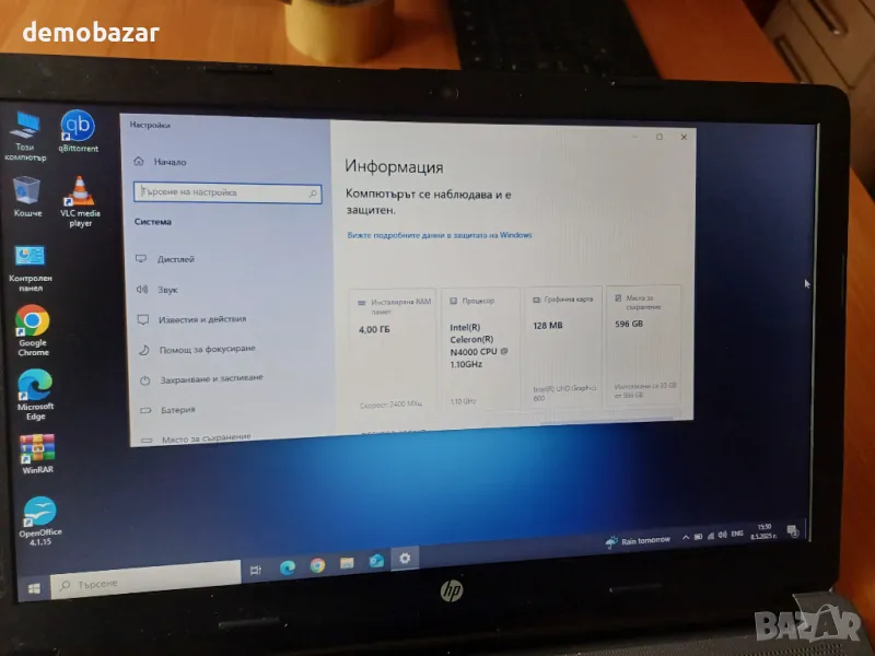 15.6 HP N4000/4GB DDR4/UHD 605/640GB HDD с батерия 3 часа