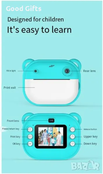 Моментна детска HD камера с хартиени ролки, Детски фотоапарат за моментни снимки
