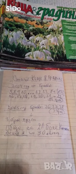 Лот от 21 списания КЪЩА и ГРАДИНА от 2004,05,06г са в много добро състояние, както се вижда на снимките!Всяко от тях е със 30 страници!Здрави и няма скъсани и липсващи листа от списанията и са като нови!Дори повечето от тях не са и разглеждани през годините!Цената е 13€ като пакетна за всичките 21броя в обявата! Пращам по Еконт с опция преглед и с 10% отстъпка за доставка до всяка точка на България!За повече инфо на лс или по телефона!