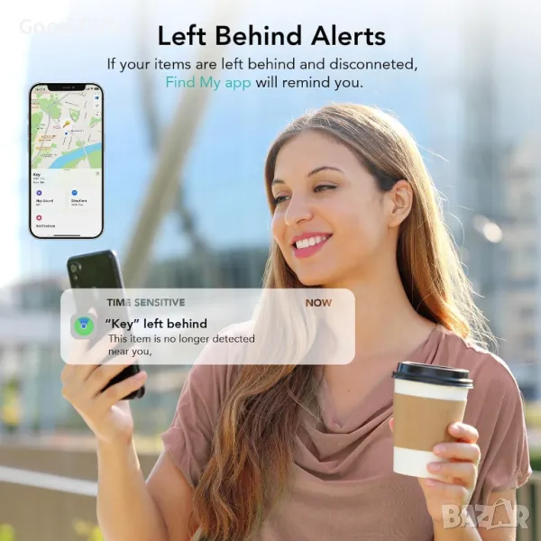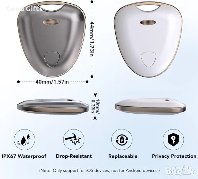 Този Мини GPS Тракер Локатор служи за проследяване на вашите вещи с помощта на приложението Find My, включително вашия багаж, ключове, раница или всякакви други основни неща. Този Air Tag за Iphone е базиран на iOS система, която работи с приложението Find Mу, с MFI сертификат, което означава, че качеството и безопасността са официално признати и имат добра съвместимост с устройства на Apple. Наблюдавайте местоположението на вашите артикули в реално време, елиминирайки паниката от загуба на ключове или портфейли. Вградената батерия издържа до 12 месеца. Освен всичко този локатор е водоустойчивост, гарантиращ липса на повреда на устройството, дори ако се загуби в дъжда.