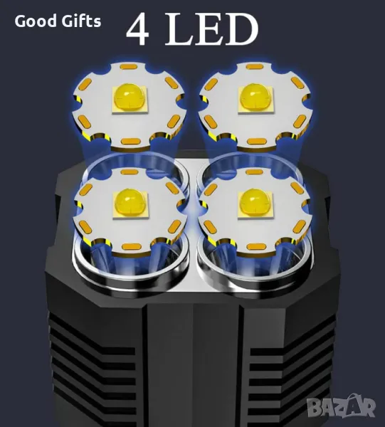 - Режим на работа: LED 100% -> LED 50% -> Flash -> COB on -> off