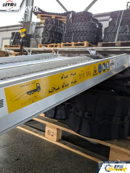Фирма EFIR-RVM поддържа на склад алуминиеви товарни рампи за багери, минибагери, челни товарачи и минитоварачи.