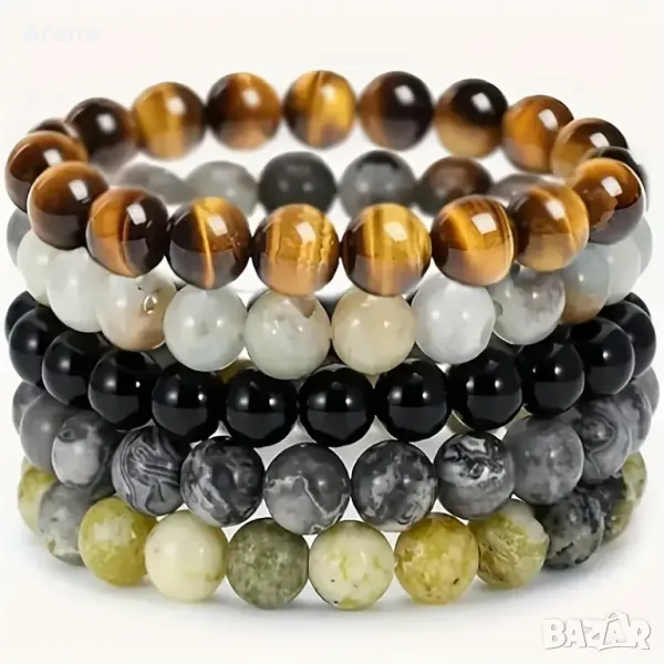 Комплект от 5 броя унисекс гривни от естествен камък нови, снимка 1 - Гривни - 50209666 Комплект от 5 броя унисекс гривни от естествен камък нови, снимка 2 - Гривни - 50209666 1/2