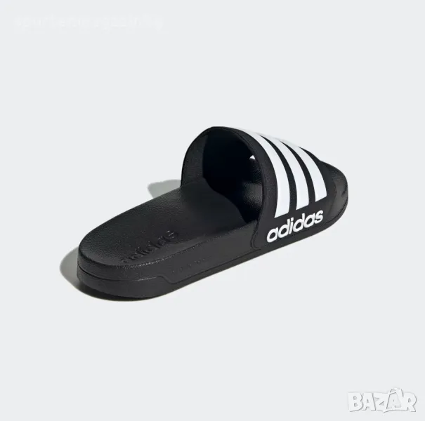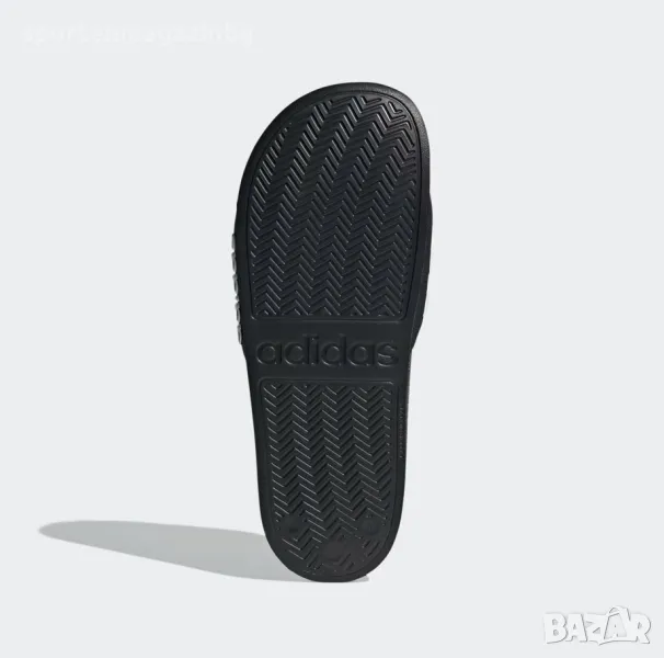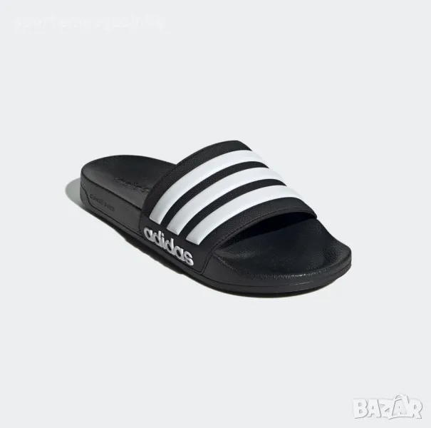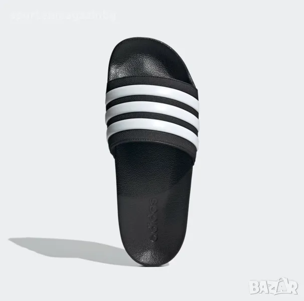 Здрава, изцяло обшита конструкция. Мека лента в горната част за естествено движение на краката. Очертаната стъпална подложка все едно е излята по краката ви, не позволява хлъзгане и изпотяване и е изключително мека. Пяната Cloudfoam на стъпалото осигурява плюшено чувство под краката. Надпис Adidas в страни и отличителни три ленти в горната част символизиращи марката. Външната подметка е със специално набраздени отвори, които гарантират трайност и перфектно сцепление дори в мокри условия.