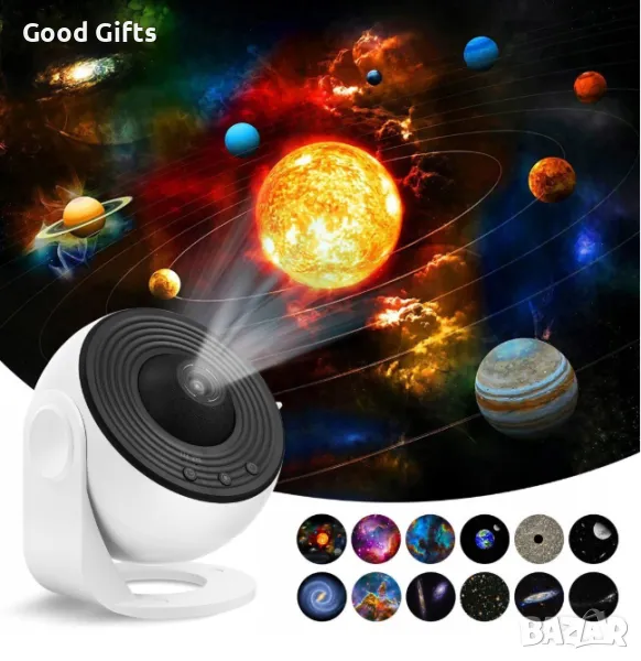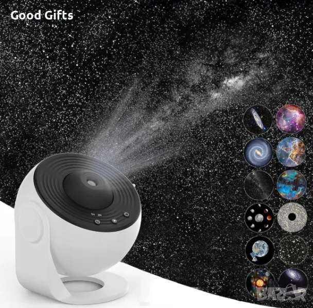 С този звезден проектор с 12 изгледа можете да покажете мистерията на Вселената у дома! Звездният проектор симулира движението на небесните тела, представяйки шокираща сцена на истинското звездно небе, давайки ви завладяващо изживяване.