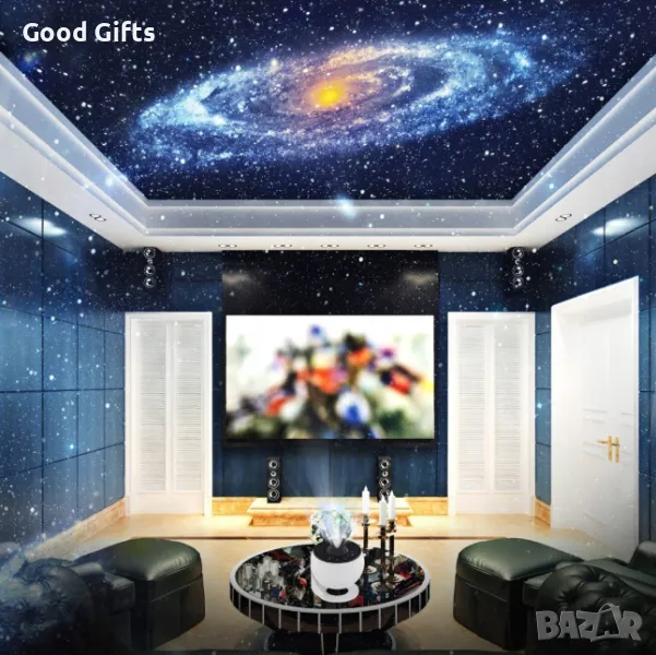 Този звезден прожектор е перфектен за декориране на стаи. Въртящото се на 180° тяло може да прожектира сцената върху тавана, стените и пода. Стимулира детското любопитство и въображение. Интересен образователен подарък за деца.