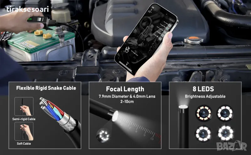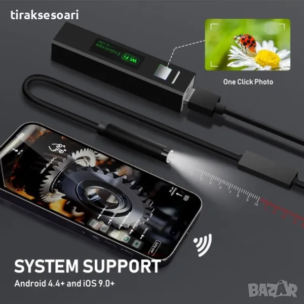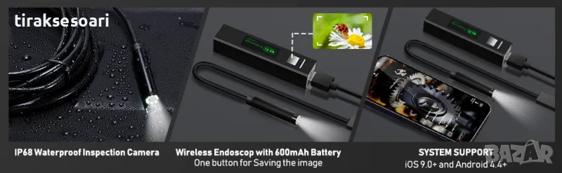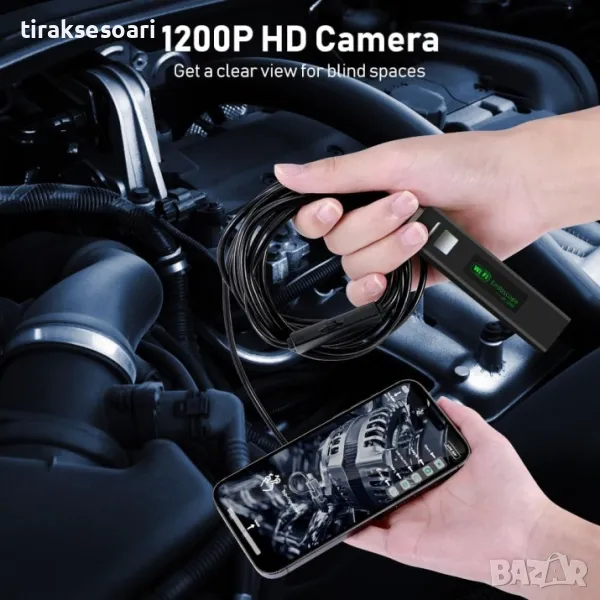 безжичен ендоскоп, ендоскоп камера, камера за телефон, съвместим с iOS, съвместим с Android, 720p резолюция, 5 метра кабел, WiFi ендоскоп, инспекционна камера, камера за тръби, ендоскоп за смартфон, водоустойчива камера, камера за труднодостъпни места, техническа камера, безжична камера