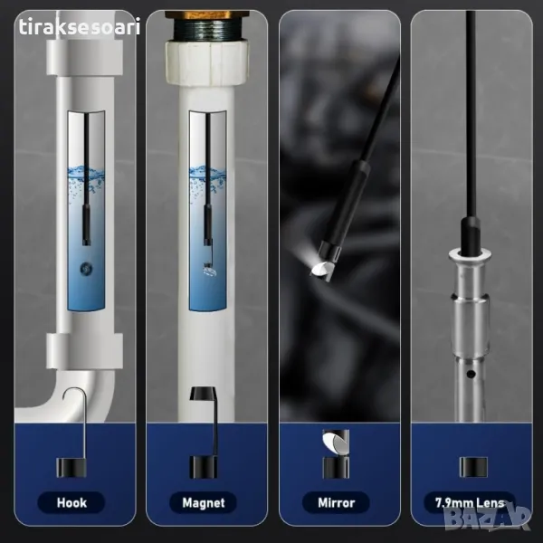 Компактната 7,9 mm интегрирана сонда може да ви помогне да проверите всеки тъмен и труден ъгъл, като регулирате яркостта на светлината, като HVAC, изпускателна тръба, клапан на двигателя, тоалетна и т.н.