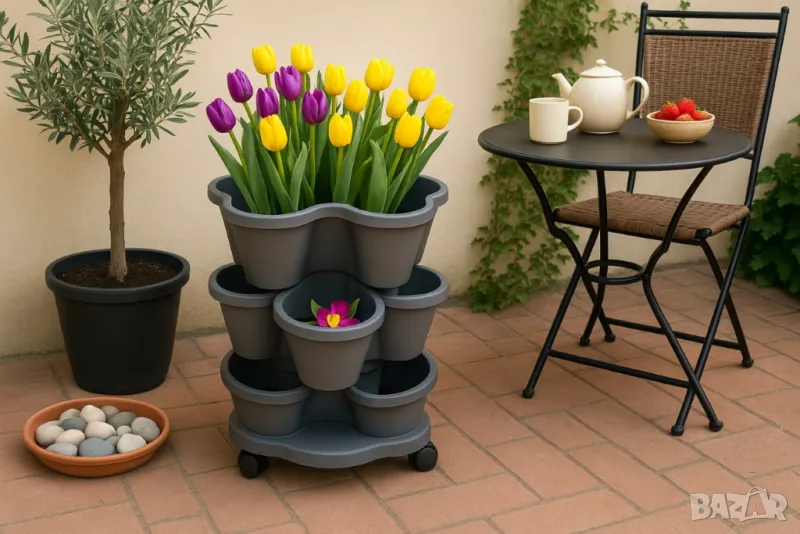 Многоетажна градинска кула с колела – модулен цветарник за дом и градина → Обява 50211108