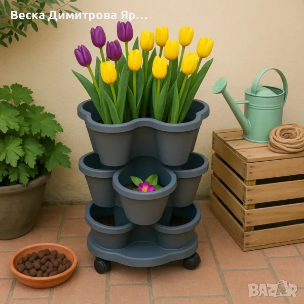 Многоетажна градинска кула с колела – модулен цветарник за дом и градина, снимка 1 - Градински мебели, декорация  - 50211108 Многоетажна градинска кула с колела – модулен цветарник за дом и градина, снимка 2 - Градински мебели, декорация  - 50211108 Многоетажна градинска кула с колела – модулен цветарник за дом и градина, снимка 3 - Градински мебели, декорация  - 50211108 Многоетажна градинска кула с колела – модулен цветарник за дом и градина, снимка 4 - Градински мебели, декорация  - 50211108 Многоетажна градинска кула с колела – модулен цветарник за дом и градина, снимка 5 - Градински мебели, декорация  - 50211108 1/5