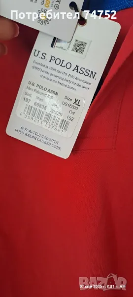 Мъжка блуза с къс ръкав в червен цвят на U.S. polo. Нова.