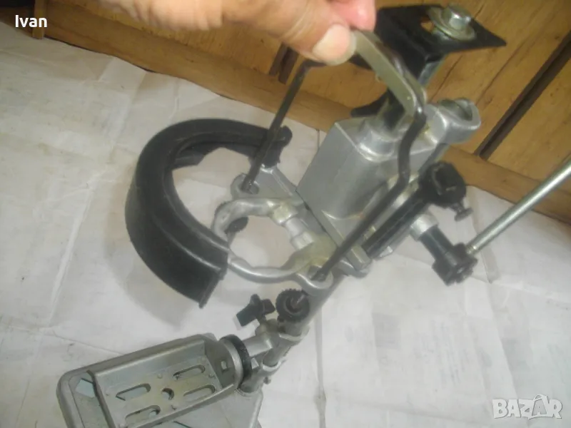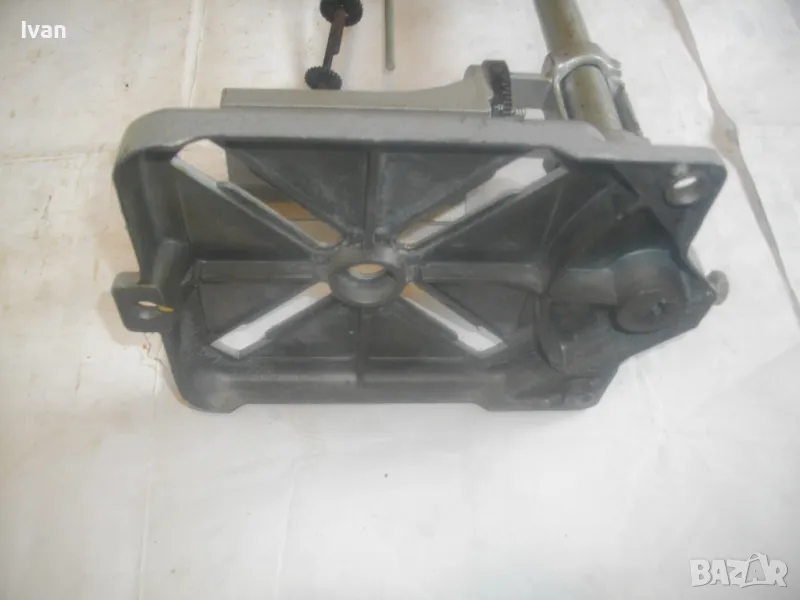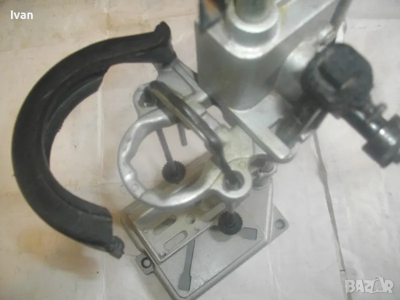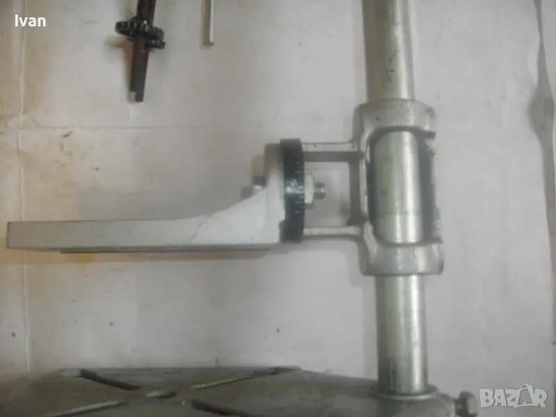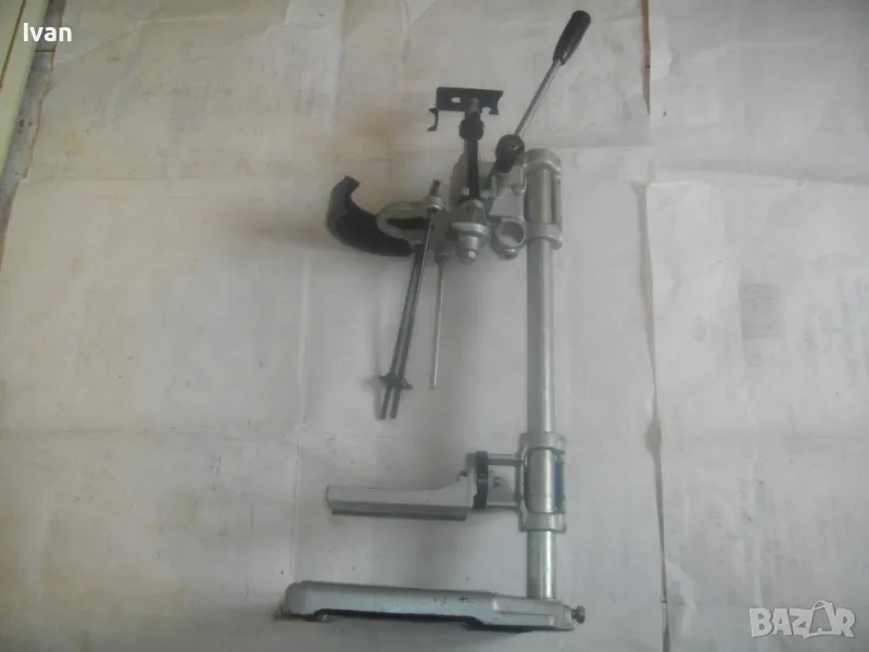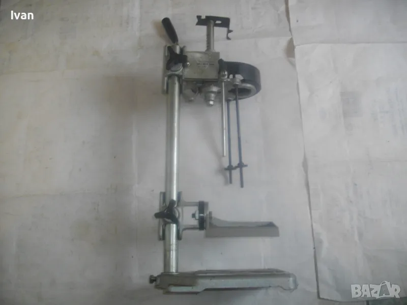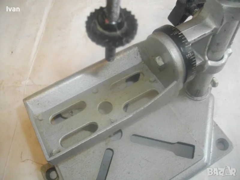 ОПИСАНИЕ на нова стойка ф 43мм за пробиване под ъгъл с въртелива функция - ход 65 мм - сив цвят - цена 249 лв. Съвсем нова, неизползвана и неупотребявана стойка за бормашина за специализирано пробиване - право и под ъгъл - с възможност регулация на пробива до 180 градуса. Не е упоменато произовдство на стойката. Надписи по нея: