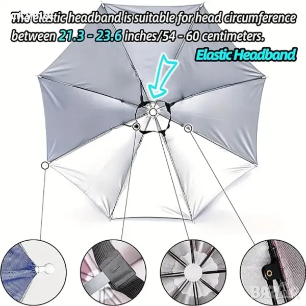 Сгъваема шапка-чадър върху главата за защита от дъжд и слънце, сгъваема риболовна шапка за голф, колоездене, туризъм, къмпинг, чадър свободни ръце.