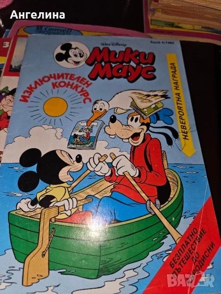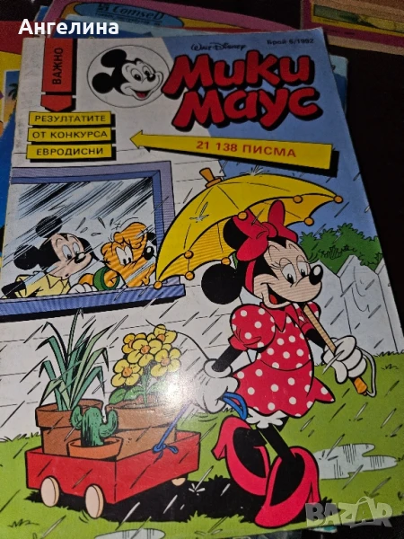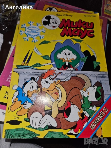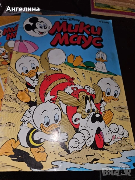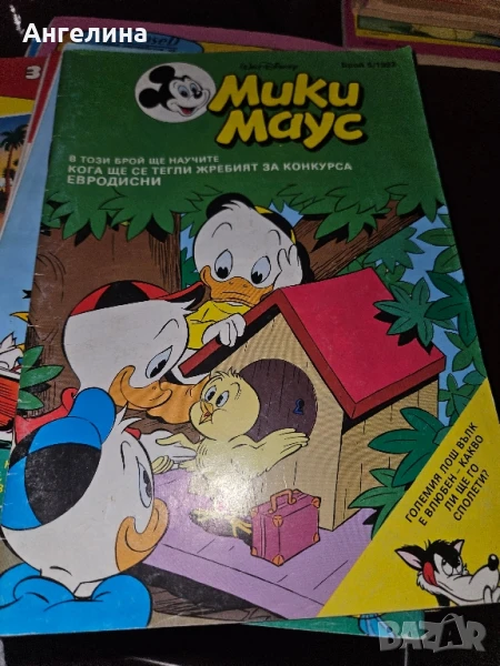 Продавам цялата ми колекция комиски Мики маус,в отлично състояние са .От 1991 до 1995 всичките без липси.Като има повтарящи се доста броеве като 1991 нулевия брой го имам 2 или 3 пъти трябва да проверя,3 брой го имам два пъти и още няколко повторки имам. Общо броевете са 76 броя ,без повтарящите се.Също имам няколко броя от 1996 .