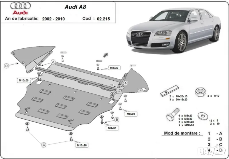 Метална кора под двигател Audi A8 D3 2002г – 2010г → Обява 50213123
