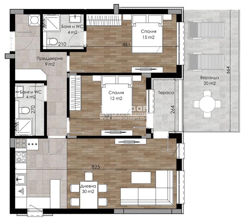 Оферта 59344: Представяме на Вашето внимание един проект на водеща фирма в изграждането на комплекси от затворен тип в град Пловдив. Вече 15 години компанията акцентира върху комфорта, безопасността и сигурността в своите комплекси, естетичното оформление на пространството около сградите и отлично развитата инфраструктура, сред която умело да бъдат съчетавани работа, развлечения, спорт и почивка. Апартаментът, които ви предлагаме се състои от Просторна Югозападна дневна - 30 кв.м. със светъл кухненски бокс, две спални: родителска 15 кв.м. със собствена баня с тоалетна, детска 12 кв.м., втора баня с тоалетна, входно антре с място за гардеров и перално и една тераса. Най-новият проект на компанията е луксозен комплекс, който е разположен в южната част на град Пловдив, обграден от природа, която дава неподправено усещане за простор и спокойствие, с невероятна гледка към Родопите. Комплексът се базира на концепцията за извънградски комплекс, където в голям терен се разполагат по-малки жилищни единици, къщи и апартаменти, които предлагат спокойствието в покрайнините на града. В сградите има жилища с една, две и три спални, единични и двойни подземни и надземни гаражи, както и външни паркоместа. На входа на всяка сграда е поставена система за индивидуален чип, високоскоростни асансьори, а вътрешнопарковото пространство е решено в богата висока и ниска растителност, заобиколена от живописни зеленина, детска площадка и площ за спорт. Благодарение на ниската си плътност на застрояване, архитектурния си дизайн и добрата ориентация, комплексът е предпочитано място, което осигурява на обитателите си спокоен и качествен живот. Осигурено Банково Финансиране с изключително Изгодни условия за клиенти на Агенцията от Водещи Банки !!!ВИЖТЕ ОЩЕ ИЗГОДНИ ОФЕРТИ НА https://www.kondorimoti.com/ С ЕЖЕДНЕВНА АКТУАЛИЗАЦИЯ!