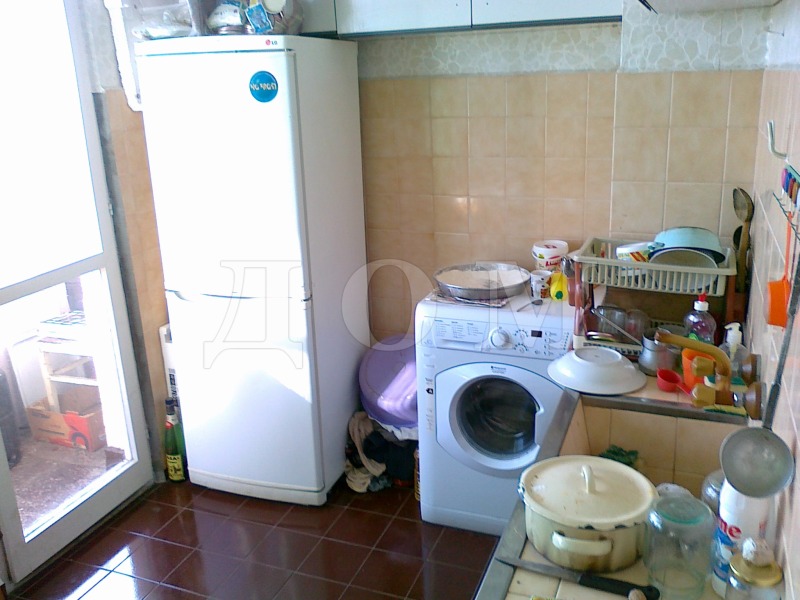ЕКСКЛУЗИВНО! Агенция за имоти 'ДОМ' предлага за продажба Двустаен апартамент, състоящ се от хол, спалня, кухня, сервизно помещение, коридор, тераси. Подовото покритие на целият апартамент е теракота. Стените на хола, спалнята и коридора са с пръскана мазилка. Към хола има голяма, открита тераса, а от кухнята се излиза на по- малка и остъклена тераса. В коридора има вграден гардероб. Банята и тоалетната са направени с фаянс и теракот. Жилището има допълнителна, метална, входна врата.