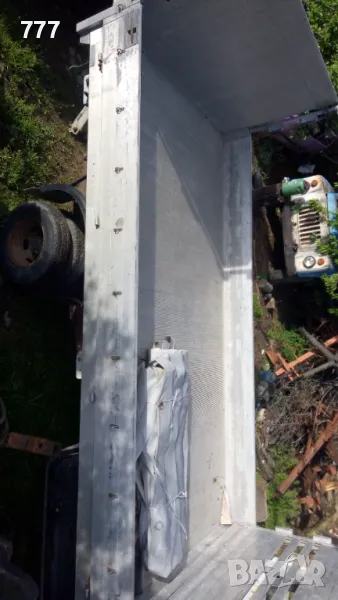 Каросерията е алуминиева,като нова, има и брезент,но е скъсан отгоре,страниците са здрави,падащият борд и ветробрана влизат в цената,2.10 широка и 4 метра дълга
