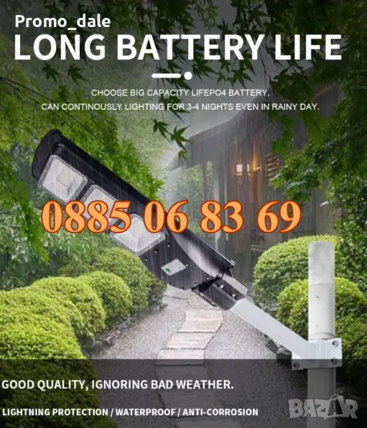 Благодарение на вградената литиево-йонна батерия при пълна липса на слънчева радиация лампата може да свети до 24 часа в пестящ режим.