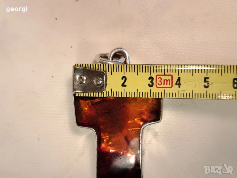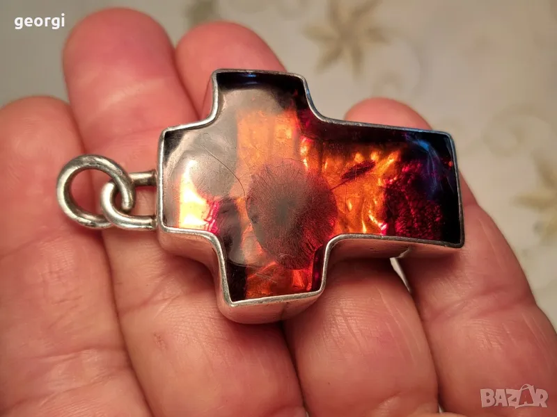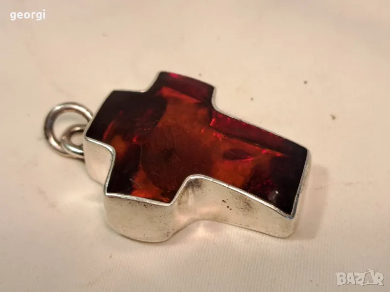 голям сребърен кръст с естествен кехлибар → Обява 50215116