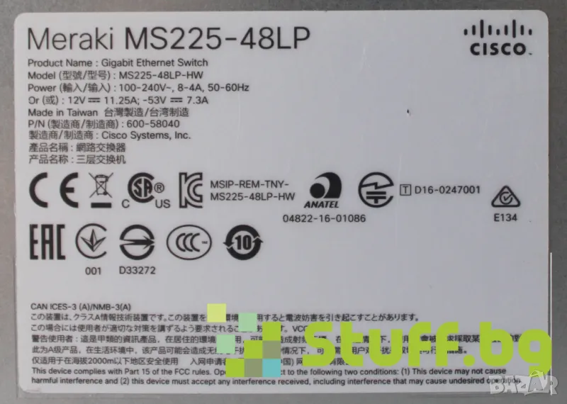 Meraki MS225-48 е L2 Stacking Cloud-Managed 48x GigE 370W PoE комутатор. Комутаторите от серията Cisco Meraki MS225 осигуряват комутация за достъп на ниво 2 и са идеални за внедряване в клонове. С възможности за стекиране и 10G SFP+ връзки на всеки модел, производителността е гарантирана. Това семейство поддържа и опционален, монтиран в шкаф дистанционен захранващ блок (Cisco RPS-2300) за изисквания за резервиране на захранване.