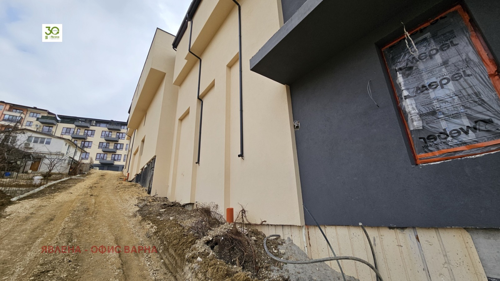 Пространството около сградата изцяло се облагородява и озеленява. Проектирана е система за преработка и събиране на дъждовна вода за напояване на зелените площи. Степен на завършеност: АКТ 16.