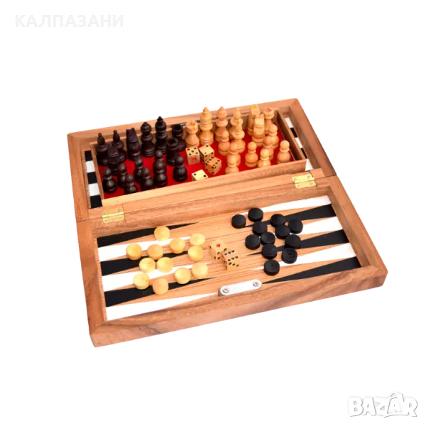 Представяме ви дървен шах и табла във висококачествена дървена сгъваема кутия.