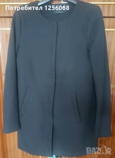 Черно,дамско сако,по етикет е С размер,но по-скоро е М.Без забележки!