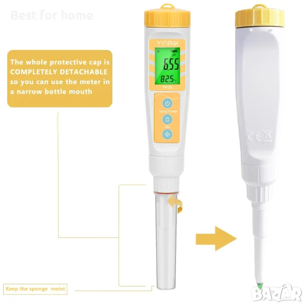 Стабилен и точен pH тестер за храна: Повече чипове за по-стабилно отчитане, с два пъти по-голямо количество от други продукти, няма нужда да се притеснявате за отчитането навсякъде. Създаден с ATC система, независимо дали е горещ летен ден или студен зимен ден, винаги ще получавате точни измервания. Още по-вълнуващо е, че защитната капачка на тестера съдържа влажна гъба, напоена с разтвор на KCL, което прави сондата винаги влажна и това осигурява на тестера по-дълъг живот.