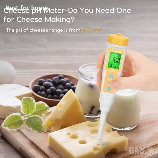 pH метър за приготвяне на квас: Със своята патентована pH сонда, YINMIK pH метърът за храна е чудесен за управление на ферментацията на квас. Можете да го използвате, за да проверите pH на вашето тесто за хляб с квас по време на етапа на ферментация в насипно състояние.