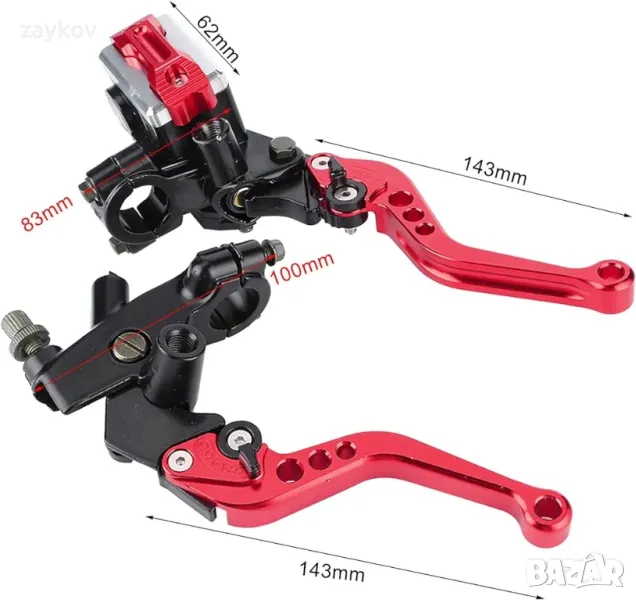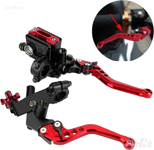 Лостове за спирачки и съединители за мотоциклети Fydun, универсален комплект 22 мм лост за съединител и спирачен лост за мотоциклет, хидравлични регулируеми лостове за главен спирачен цилиндър (червени)