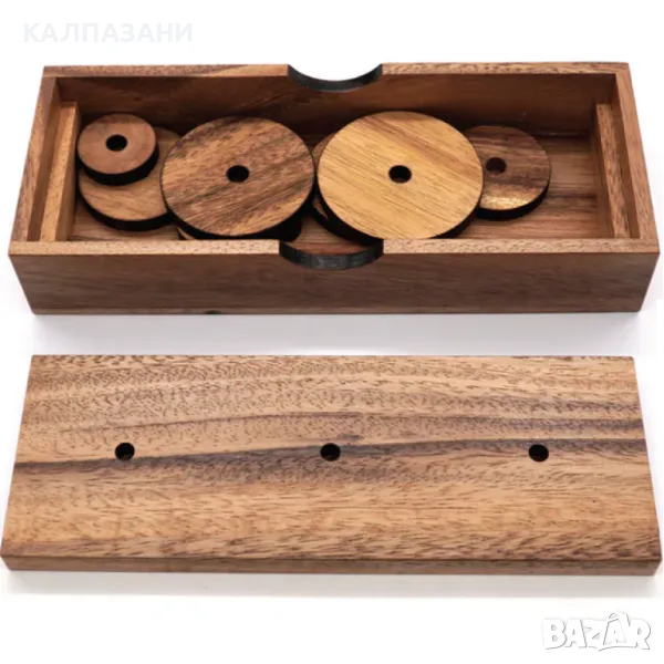 Продуктът е изработен от 100% естествено дърво. Използвано е издръжливо маймунско дърво и всяко парче от комплекта е ръчно изработено с голяма прецизност, за да се осигури лесно и правилно прилягане. Дървото е хипоалергично, без химикали и без забележима миризма.