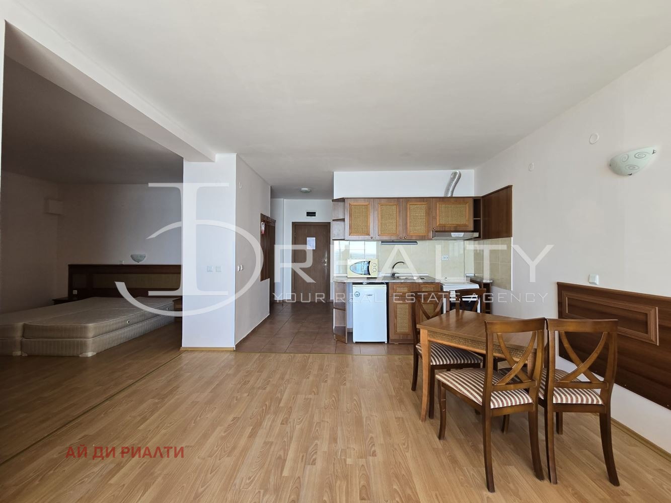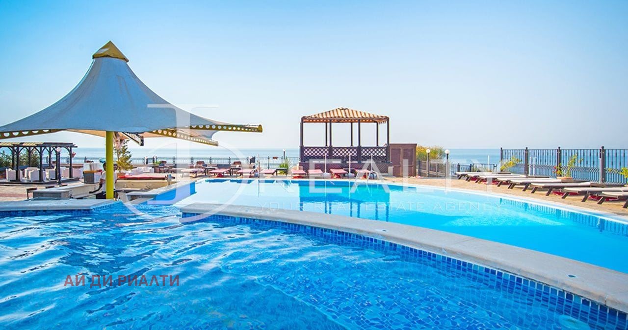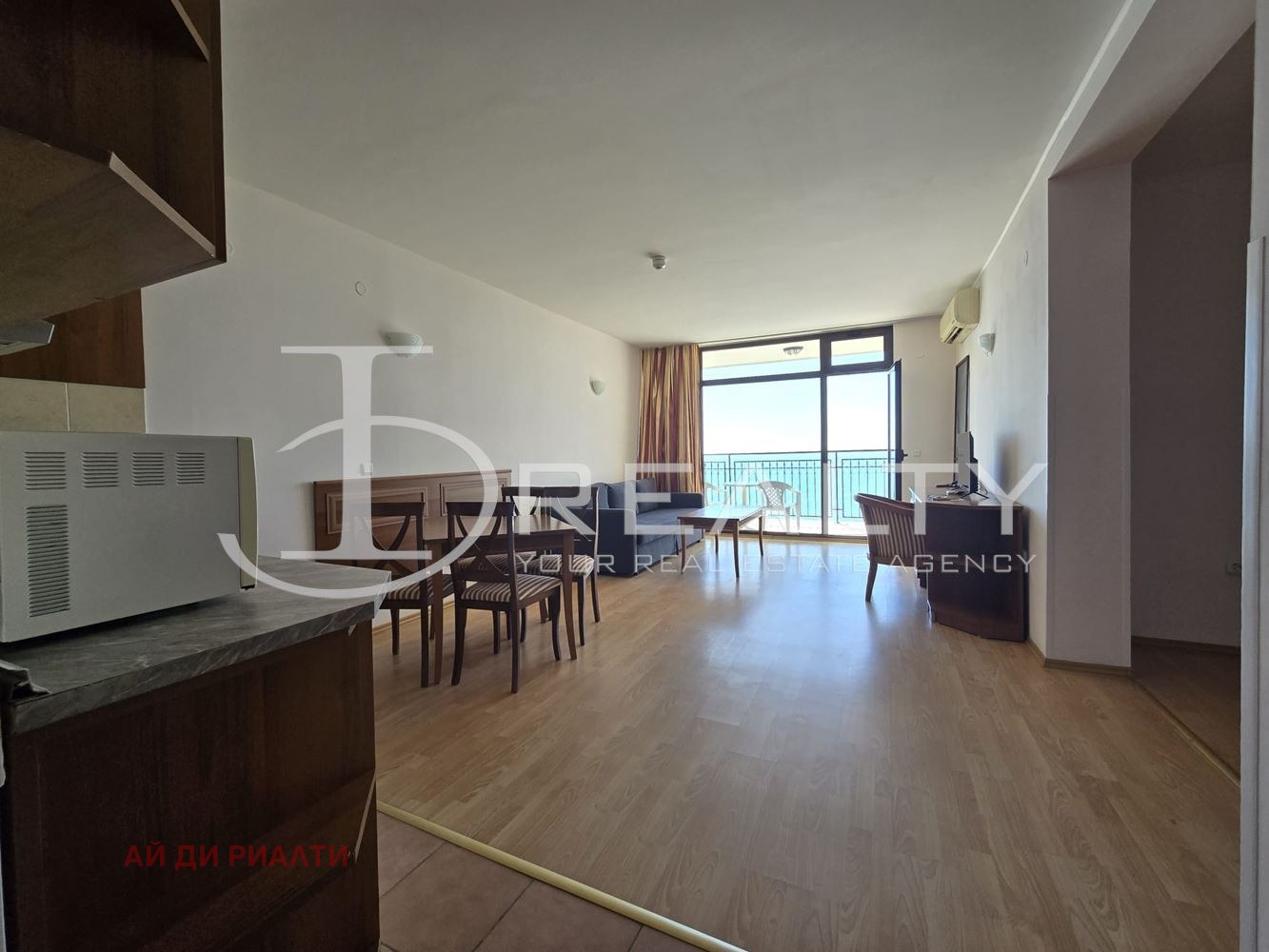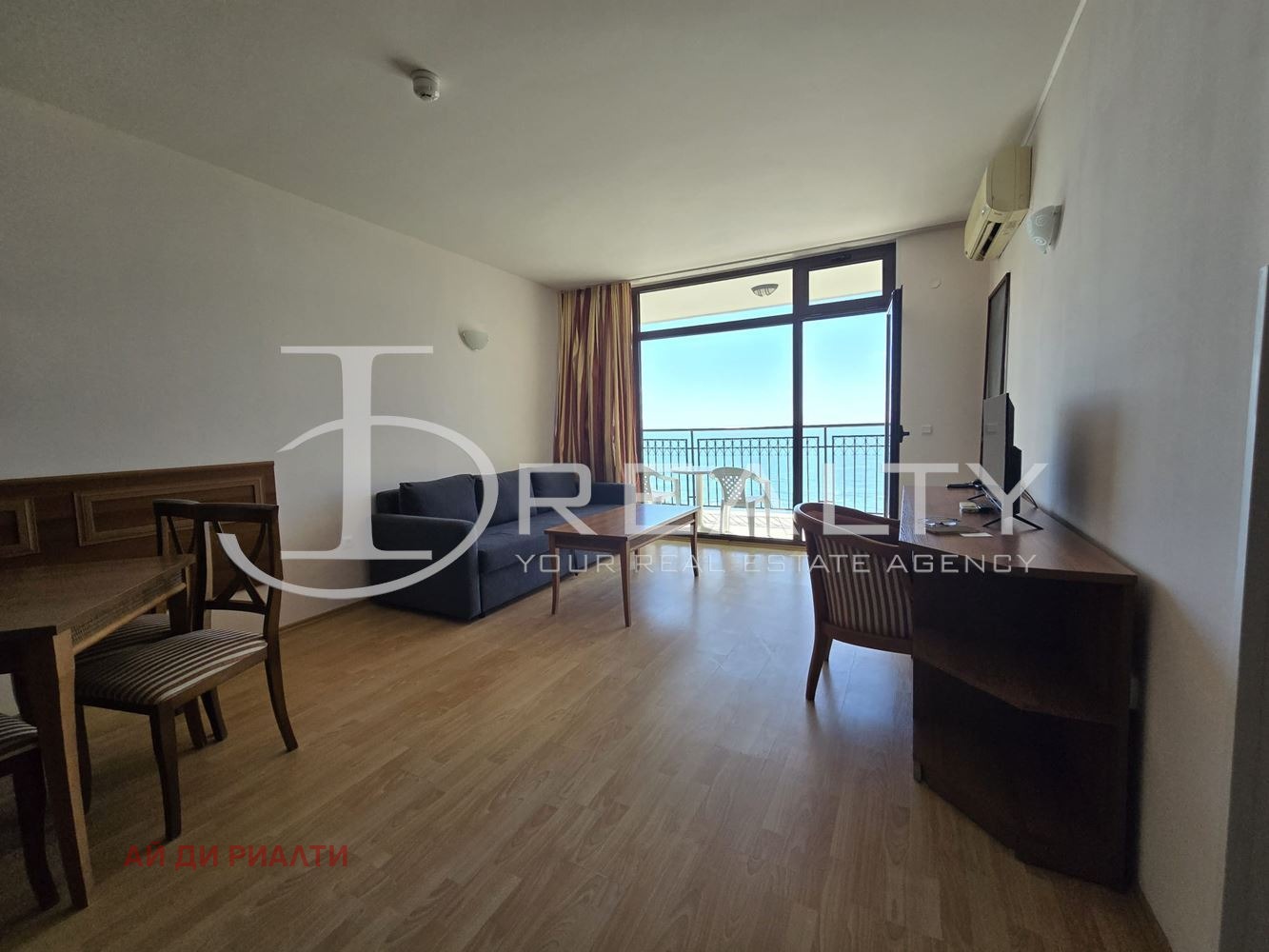 ID Realty има удоволствието да Ви представи просторен двустаен апартамент в затворен комплекс на първа линия в гр. Свети Влас Апартаментът се състои от антре, кухненски кът, всекидневна, спалня, санитарен възел и тераса с спиръща дъха гледка. Издава се напълно обзаведен и готов за живеене. Жилището се намира в затворен комплекс от с басейн, асансьор и такса поддръжка 14евро на кв.м. за година. Идеален ваканционен имот. Комплекса работи от началото на м. Май до края на м. Октомври!