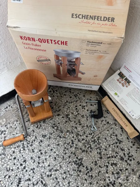 ☘️ Eschenfelder Kornquetsche – ръчна преса за зърнени храни, изработена с внимание към детайла и предназначена за приготвяне на пресни, здравословни зърнени закуски у дома.
