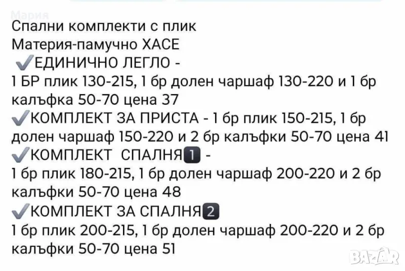 Предлагаме Всякакви размери и комплекти