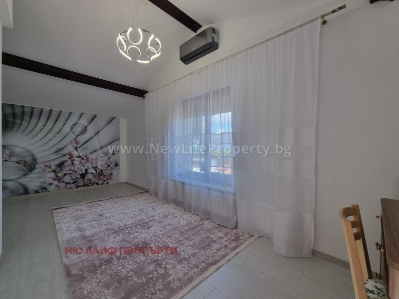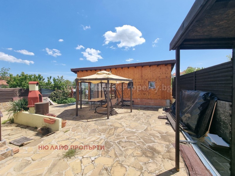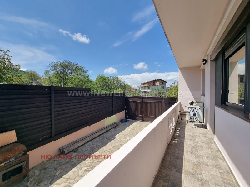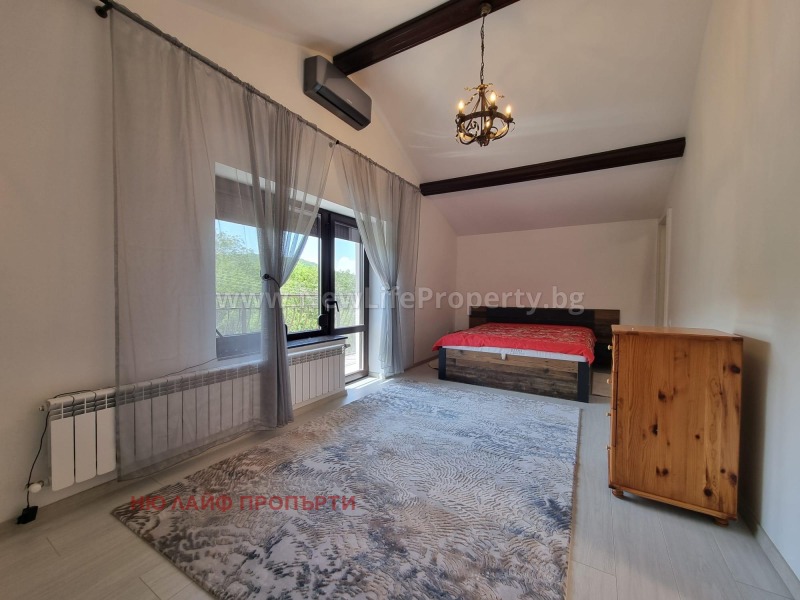 Къщата е разположена в подножието на планината, с красива панорама. Площта на къщата е 162 кв.м., без мазето. На партерния етаж има входно антре, хол с електрическа камина, кухня, трапезария с излаз на голяма тераса, спалня и баня с душ. На втория етаж: коридор, 2 спални, едната от които е с дрешник и тераса, и баня с душ. В сутерена има пелетен котел и нов бойлер. Къщата е в отлично състояние, оборудвана с нови мебели, електроуреди, климатици и е напълно готова за комфортно живеене! Всяка стая е оборудвана с радиатор. Инсталирани са интернет, телевизия, СОТ и видеонаблюдение. Водата и електричеството са централни.