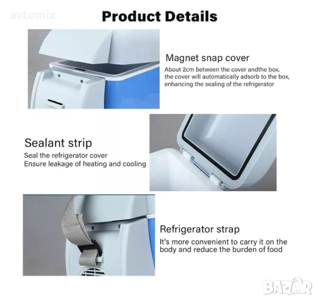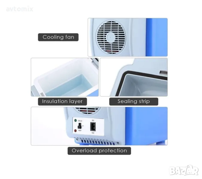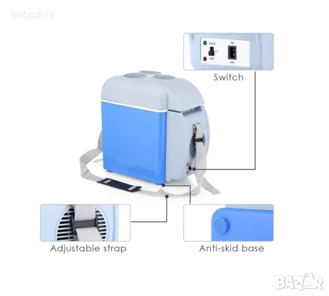 Компактна и практична хладилна кутия с двойна функция – охлаждане и затопляне, идеална за пътувания, пикници, къмпинг или ежедневна употреба в автомобила.