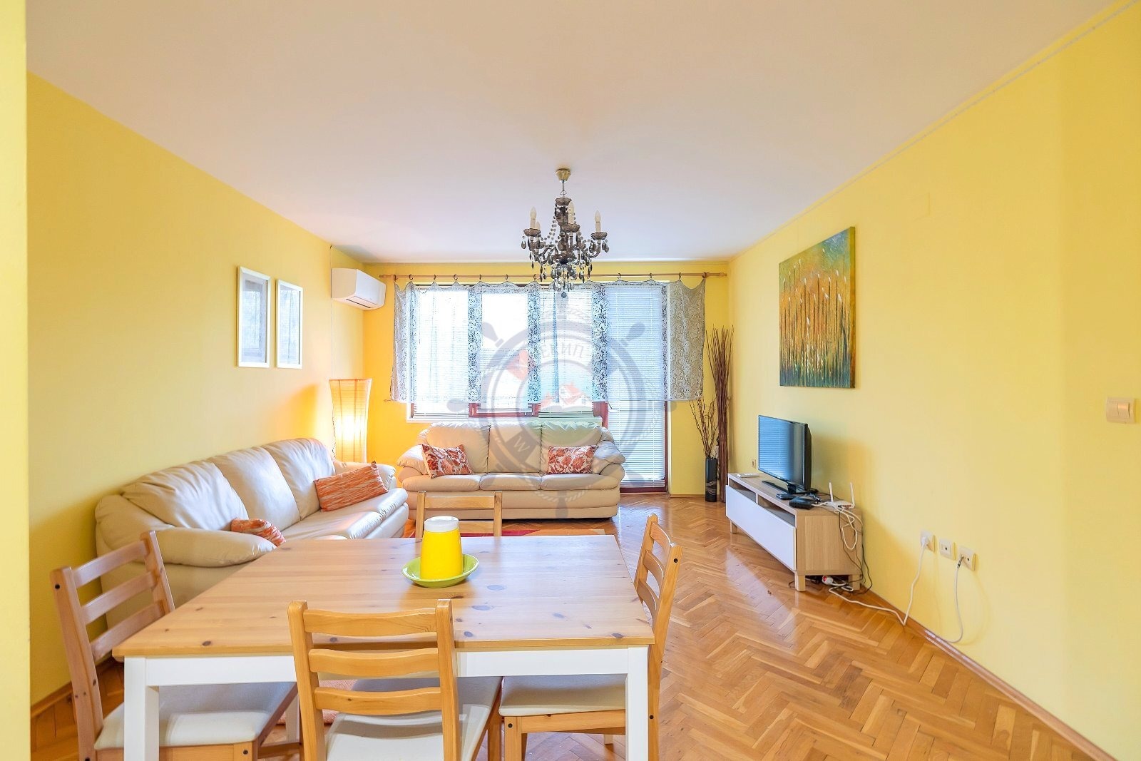 Апараментът се състои от кухненска част с трапезария и дневна, голяма спалня, обща панорамна тераса, килер, баня с тоалетна и входно антре. Жилището е напълно обзаведено и оборудвано, в много добро състояние и готово за живеене! Имотът е с площ 79,18 кв.м, както и 2,2 % ид.ч. от общите части на сградата и от правото на строеж върху ПИ. Разположен е на етаж 3/5, среден, изцяло покрит и с ЮЗ изложение! Огледи с ключ!