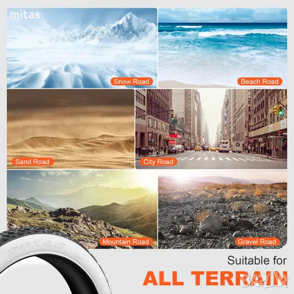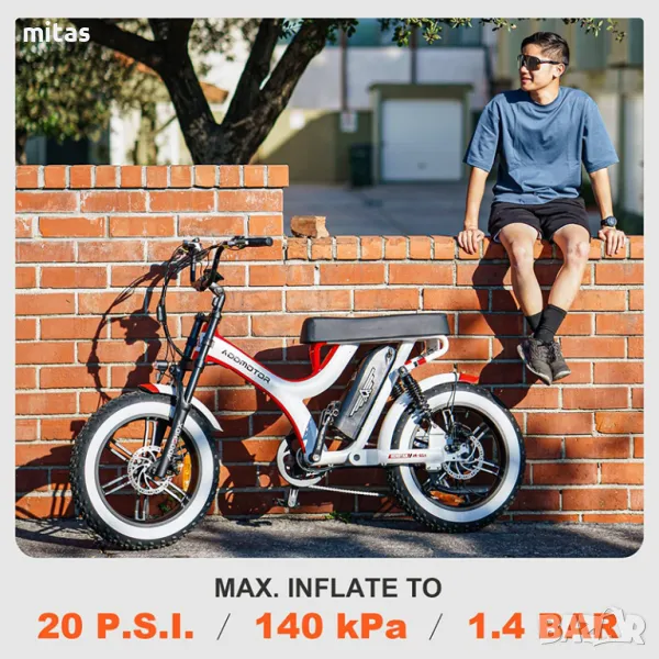 * Идеален размер и налягане: С размер 20x4.0, гумата е подходяща за различни електрически и стандартни фатбайкове. Максималното налягане от 20 PSI и товароносимост до 120 кг я правят подходяща за интензивна употреба в различни условия.