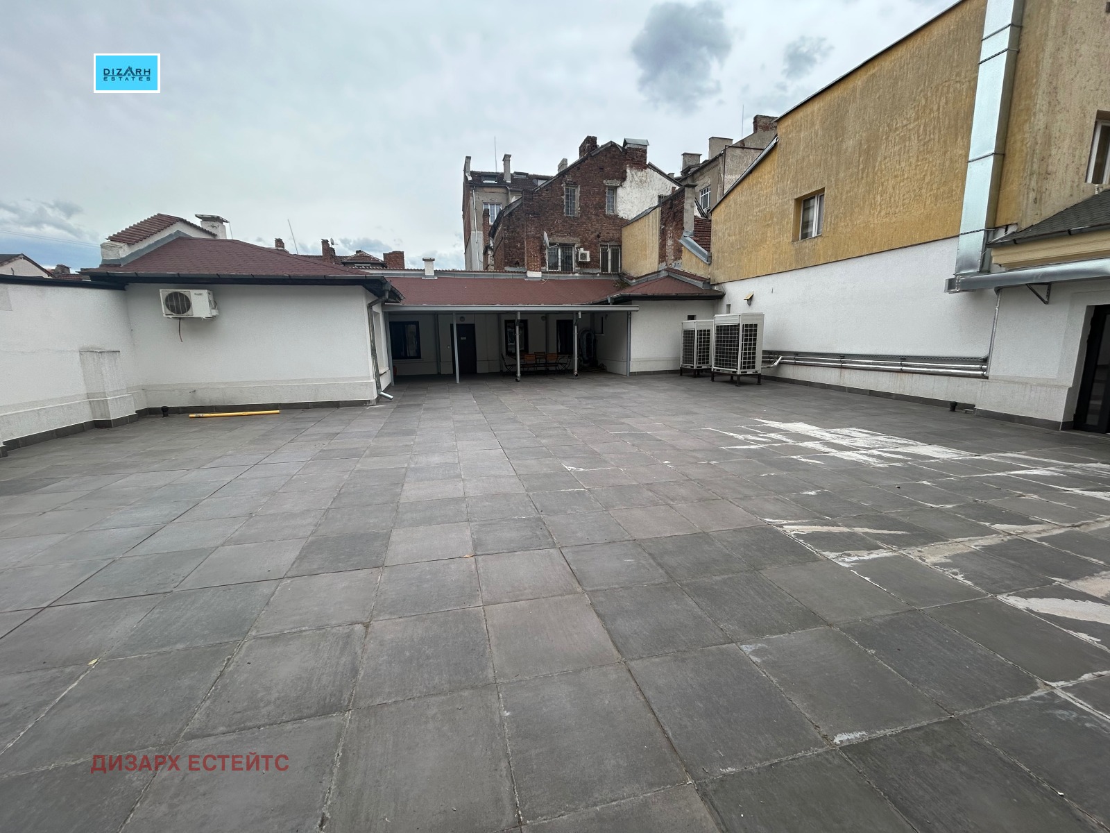 Офисът се намира на първи жилищен етаж и разполага с две самостоятелни преходни помещения с площ от 41 кв.м., споделена кухня, тоалетна и заседателнa залa с площ от 20 кв. м., както и огромна покривна тераса за общо ползване и отдих.