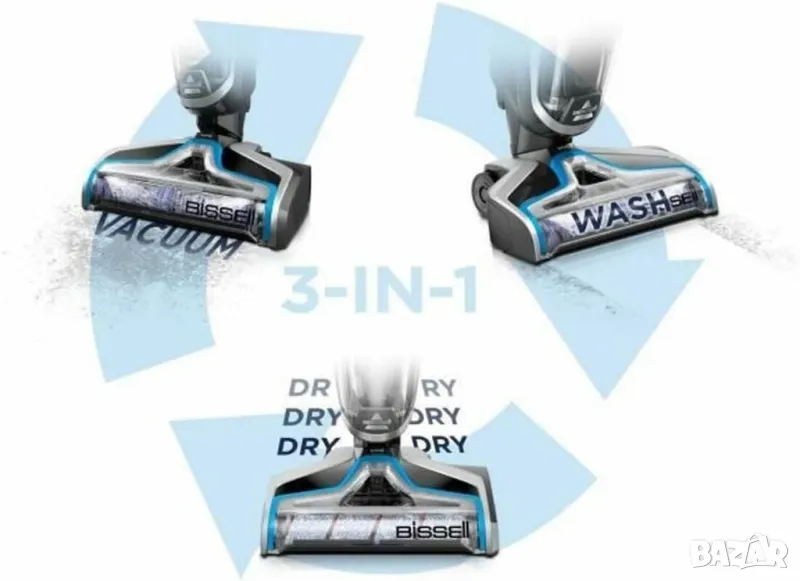 БЕЗЖИЧНА Мултифункционална прахосмукачка Bissell, Crosswave, 3 в 1, Пране, Сушене, Почистване