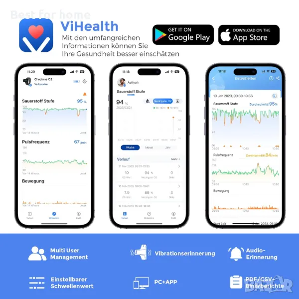 【ПРИЛОЖЕНИЕ Vihealth】Подробни отчети за кислород в кръвта и сърдечната честота могат да бъдат видени в ПРИЛОЖЕНИЕТО.